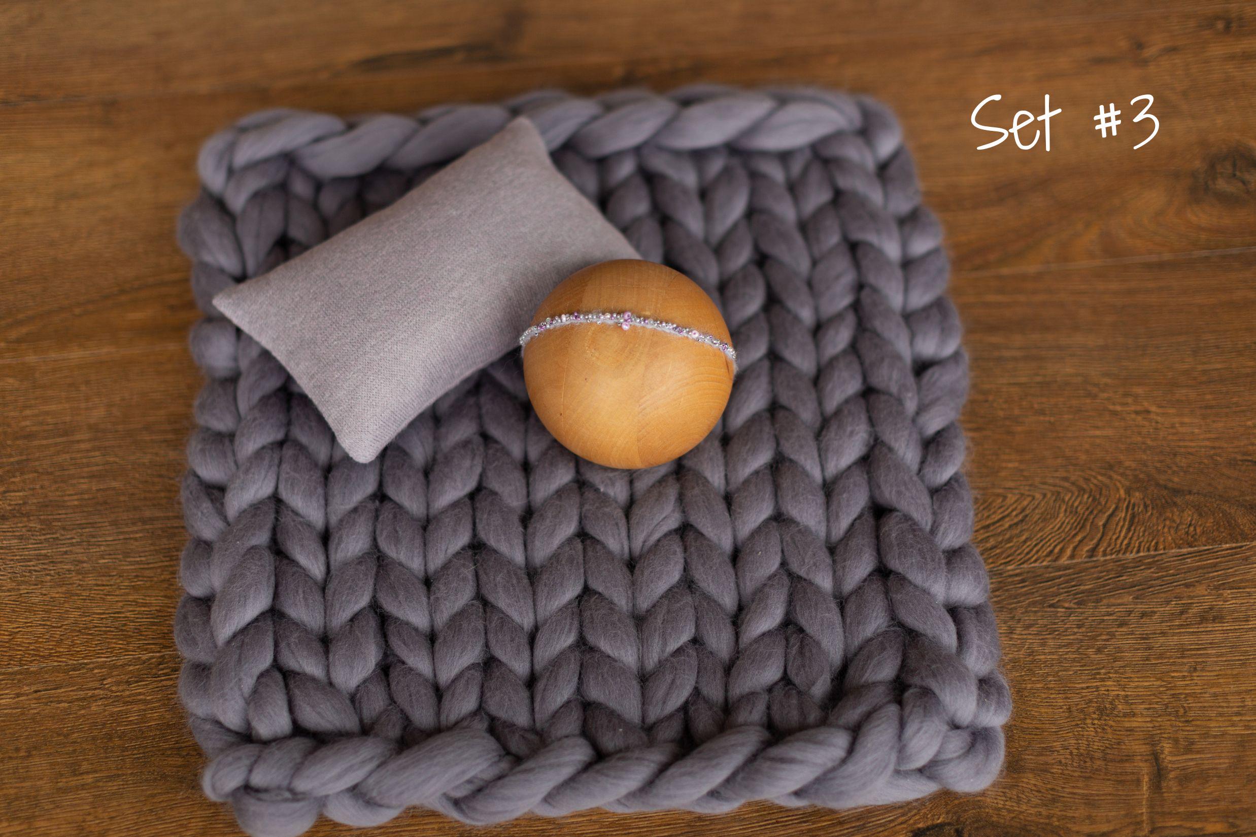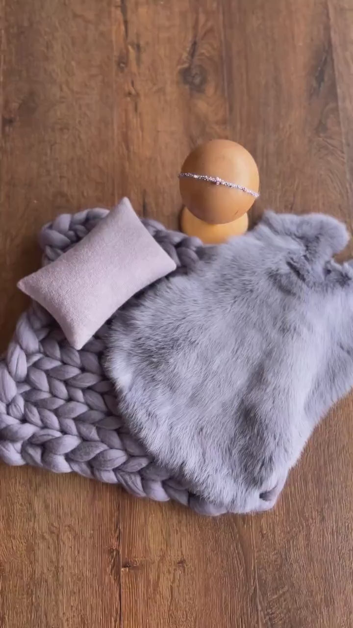 Choose Your Newborn Photo Prop Set Set #1: Merino wool blanket, natural rabbit fur, newborn photo pillow, and newborn headband. Set #2: Merino wool blanket, natural rabbit fur, and newborn photo pillow. Set #3: Merino wool blanket, newborn photo pillow, and newborn headband.