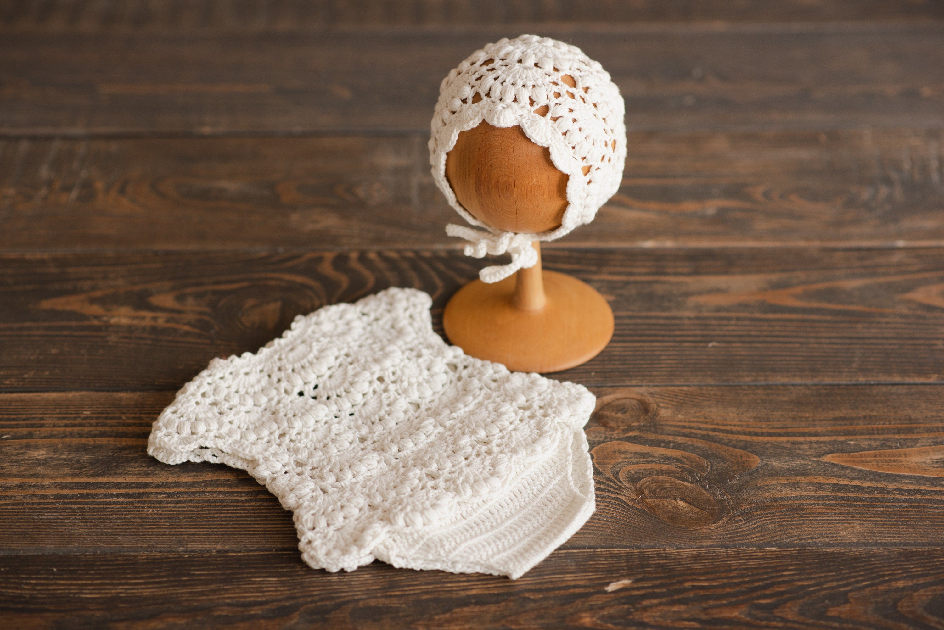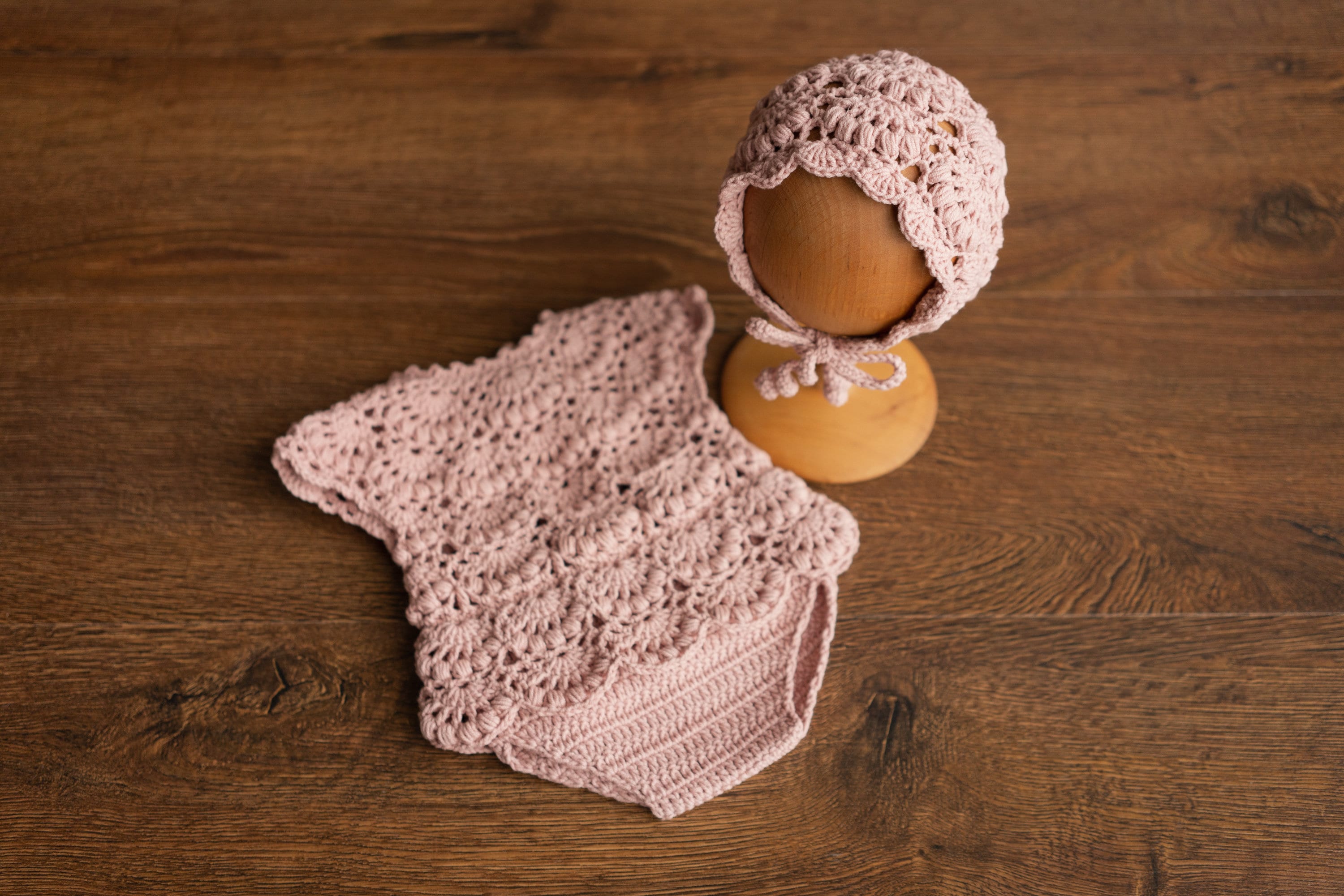 Newborn Crochet Romper and Bonnet for Girl, Newborn Knitted Outfit Girl, Newborn Girl Outfit, Newborn Girl Bonnet,Newborn Photography props