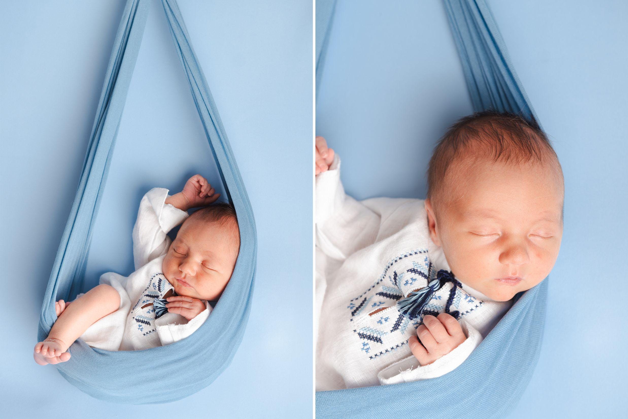 Ukrainian Baby Vyshyvanka Outfit – Linen Romper & Shirt with Blue Embroidery