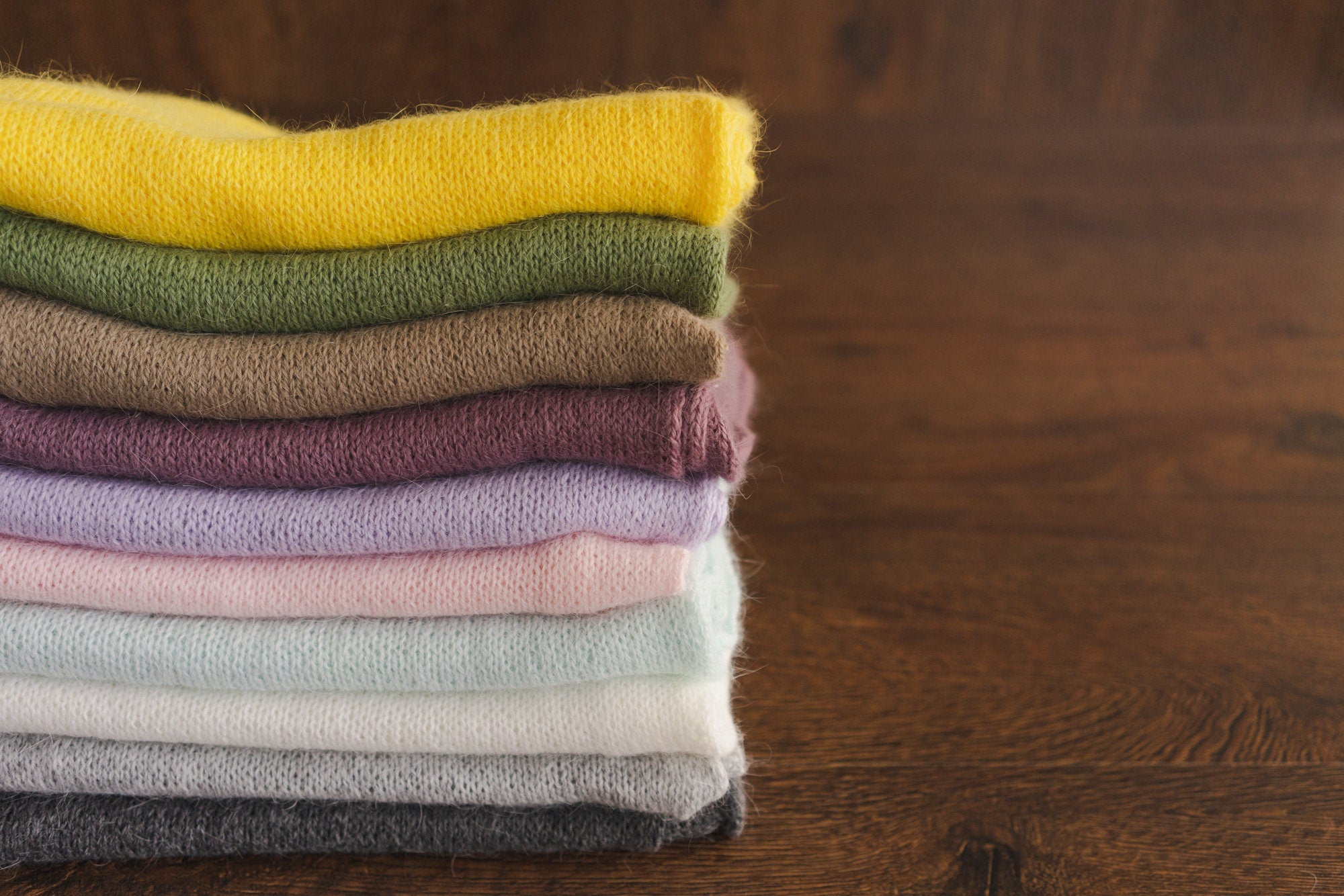 Knitted newborn wrap and bonnet set is a timeless choice for newborn photography, handcrafted from the softest angora wool. The handmade baby knit bonnet features two reversible sides with unique patterns, allowing versatile styling in every session — simply turn it inside out. Paired with a beautifully textured waffle knit newborn wrap for photoshoot, it creates a cozy, natural look. The set includes a neutral baby waffle knit swaddle and a matching waffle texture newborn hat, making it a perfect prop for classic, soft, and minimal newborn portraits.