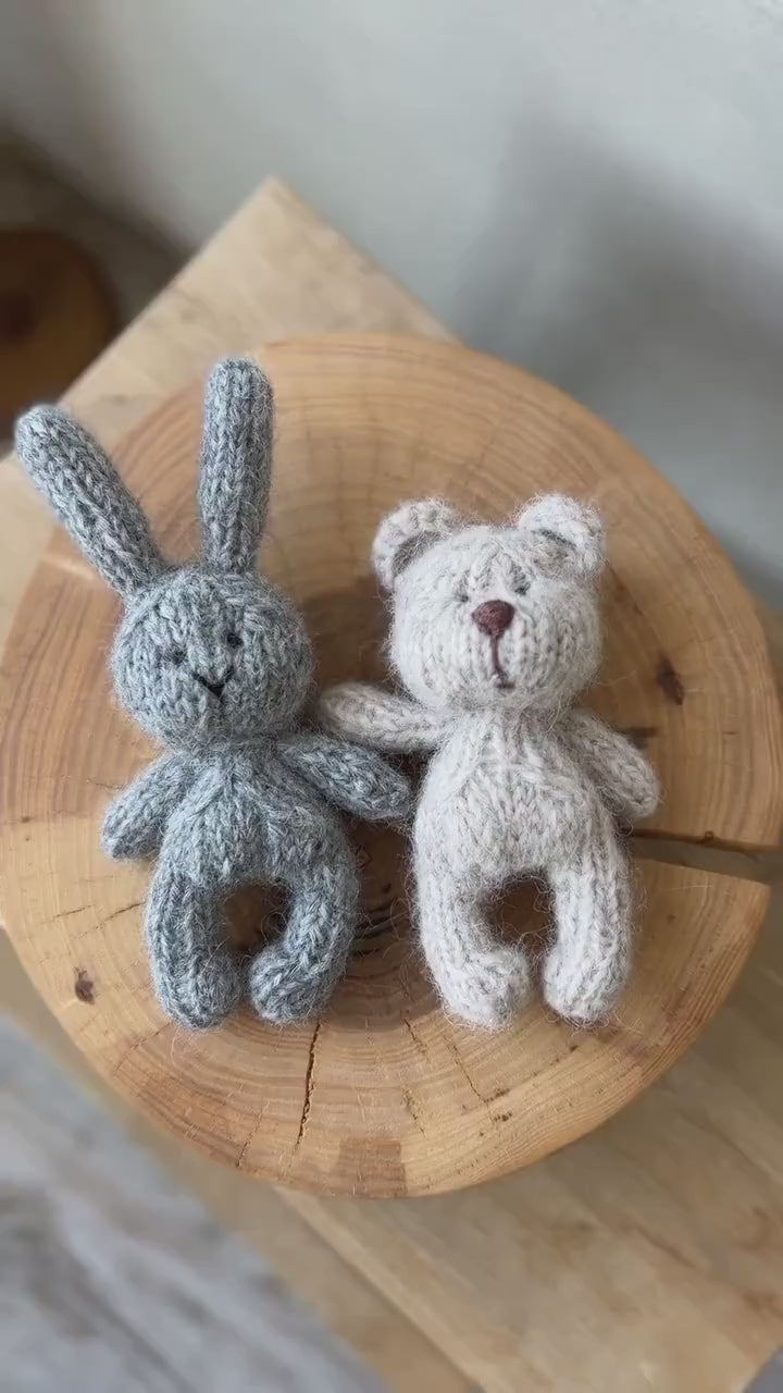 Lovely hand-knitted Teddy Bears and Bunnies toys are perfect as newborn photo props, mini knitted stuffed animals, or sweet keepsakes for babies. Each toy is lovingly crafted by hand from the finest baby alpaca wool yarn, giving it a soft, cozy, and delicate texture — perfect for tiny hands and gentle newborn poses.
