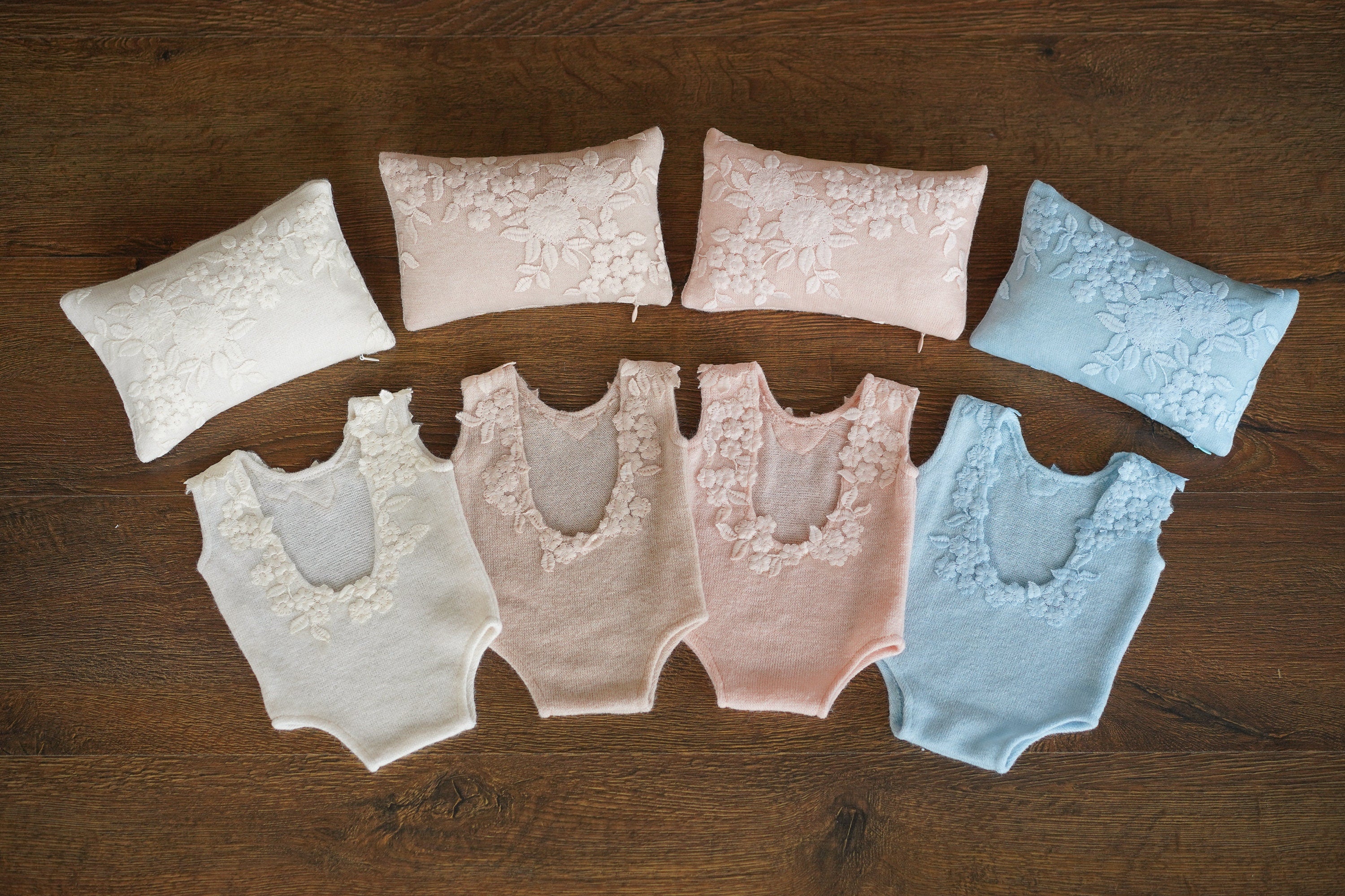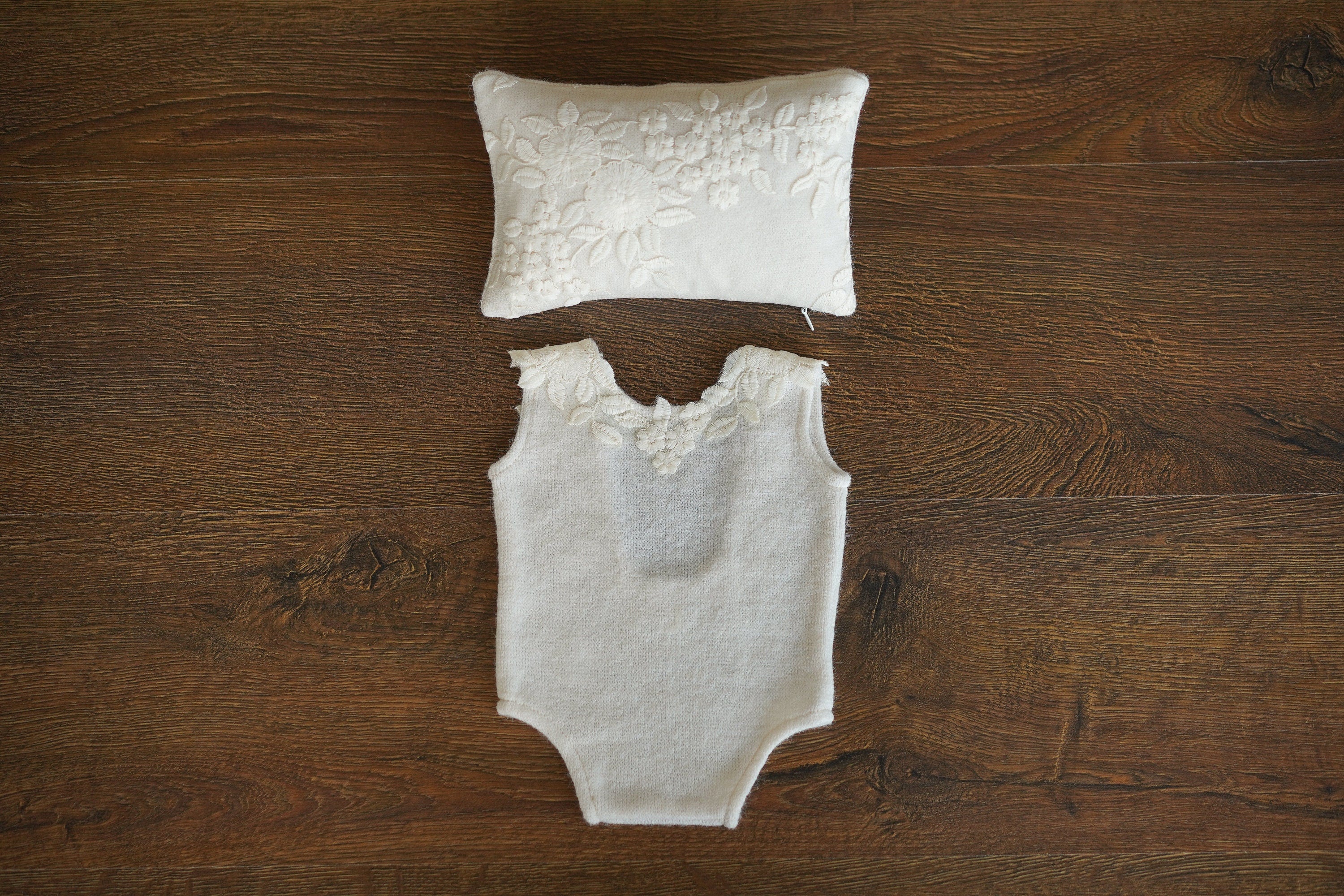 Handmade from luxuriously soft angora fabric, newborn girl romper with matching posing pillow features a delicate open-back design, perfect for newborn photography sessions, coming home outfits, first birthday cake smash, sitter photoshoots, gender reveals, baby showers, and keepsake moments.