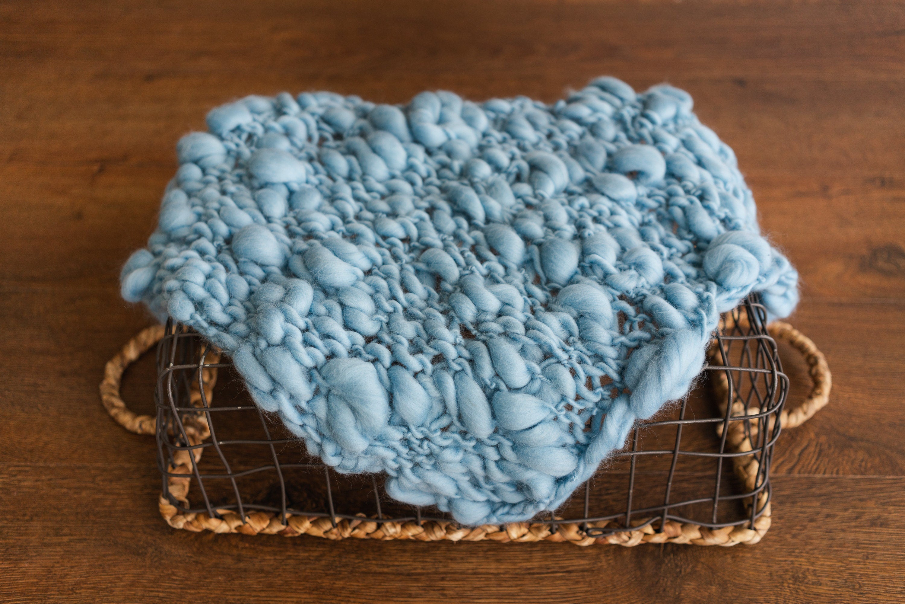 Soft, textured, and beautifully crafted, this hand-knitted merino wool mini blanket is an essential prop for newborn photography. Designed to add warmth, depth, and timeless charm to every photo, it works perfectly as a cozy layer, fluffy basket stuffer, or delicate background for baby photoshoots. Made from 100% merino wool, it offers exceptional softness and comfort against delicate newborn skin.