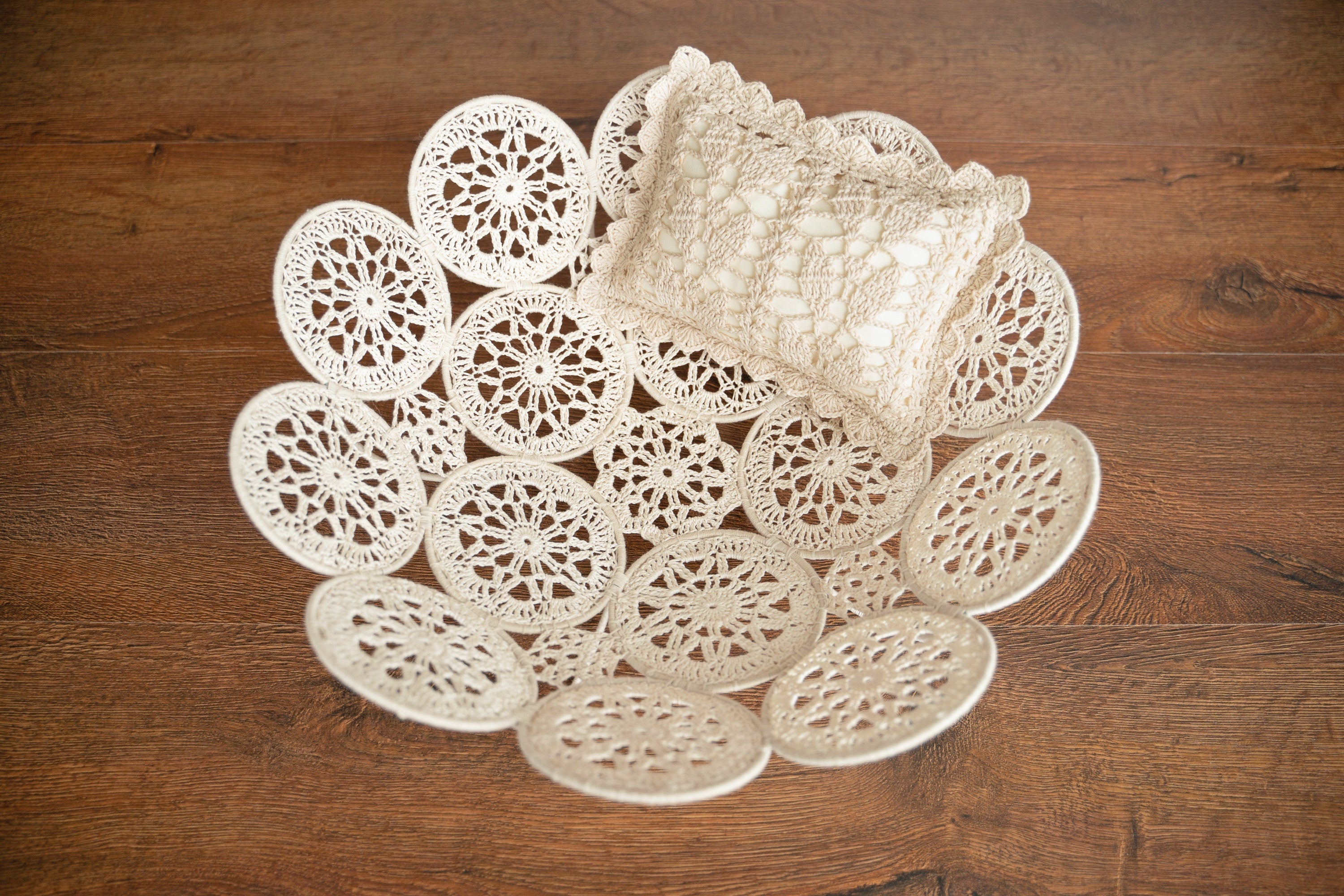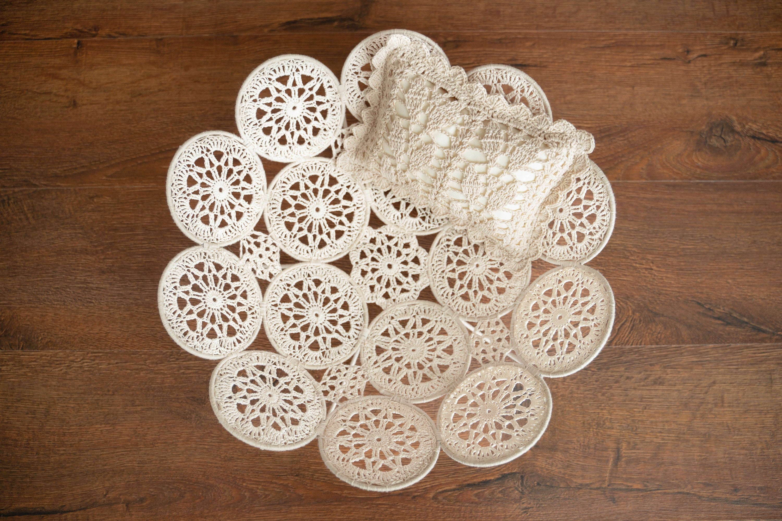 This boho-inspired newborn basket is handwoven with intricate macrame lace circles, adding a soft, artistic texture to your photography setup. Its gentle, cozy structure cradles tiny babies securely while creating elegant, timeless compositions. Beyond photography, it doubles as a charming, decorative piece for your nursery or home.