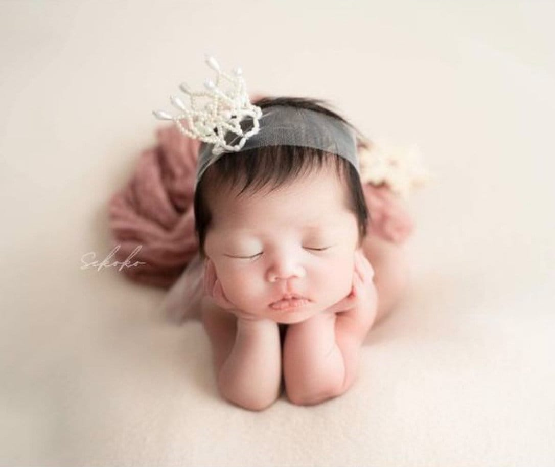 Handmade newborn crown headbands for girls are crafted from the finest beads, rhinestones, and lace fabric. Perfect as a newborn headband for photography, this elegant newborn crown prop adds a royal touch to your baby’s portraits. Designed to resemble a pearl newborn headband, it’s available in various styles to suit different photoshoot themes and outfits.