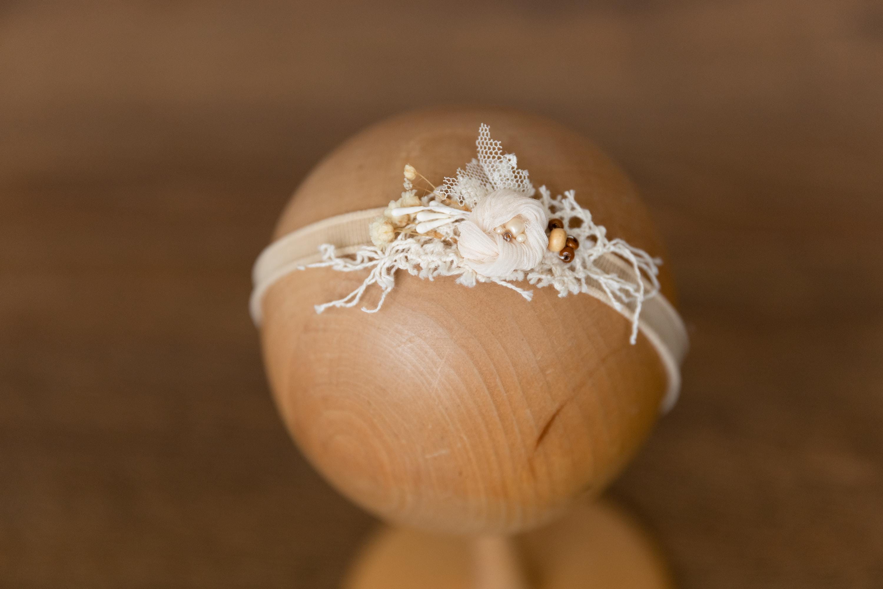 Handmade newborn tieback headbands for girls in boho style are crafted from the finest fabric, beads, feathers, and soft, chunky yarn. Each newborn headband prop adds a charming, natural touch to any newborn girl outfit, making it perfect for newborn photography sessions, sitter photos, or as a baby flower headband for special occasions. Available in various colors to complement any theme or photoshoot style — a timeless newborn photo prop for every little princess.