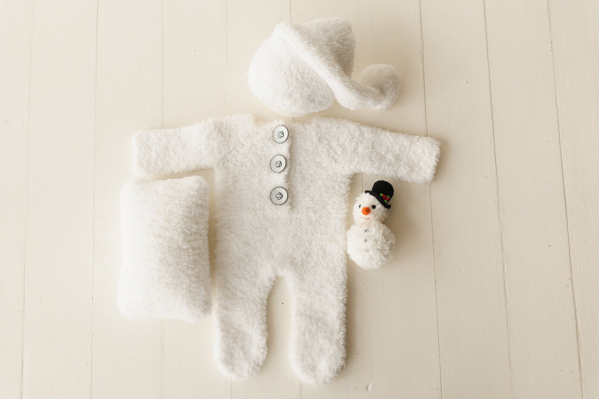 Our newborn snowman outfit is a festive and cozy baby Christmas outfit, perfect as a newborn photography outfit and newborn photography prop for magical holiday portraits. Handmade from soft knitted yarn, it includes charming details and a matching snowman toy, making it ideal for first Christmas keepsakes. Suitable for both baby boys and girls (0–1 month), this unisex baby set is a delightful choice for seasonal newborn photoshoots.