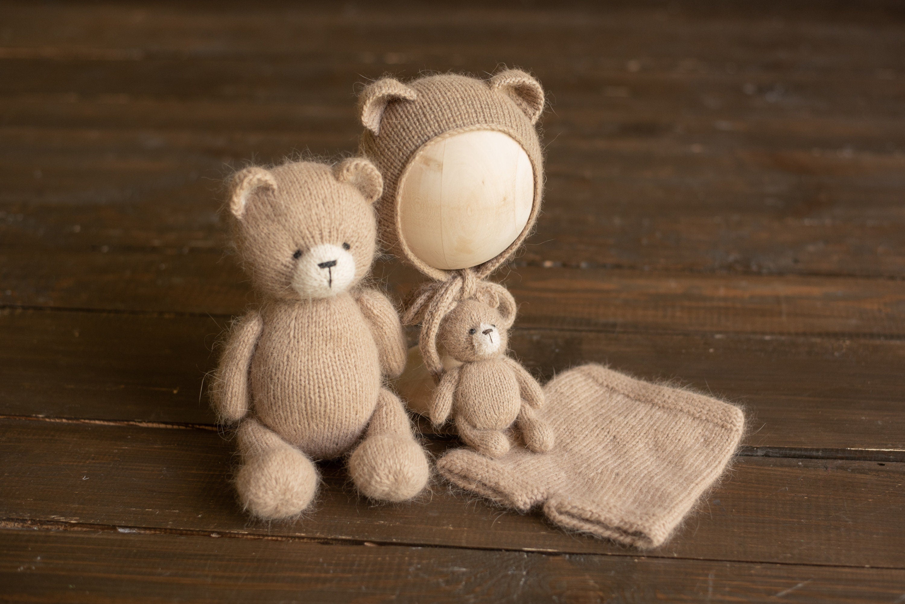Newborn Knit Teddy Bear Outfit with Toy, Newborn Knitted Outfit, Newborn Bear Hat, Newborn Photography Props Set, Newborn Teddy Bear Outfit