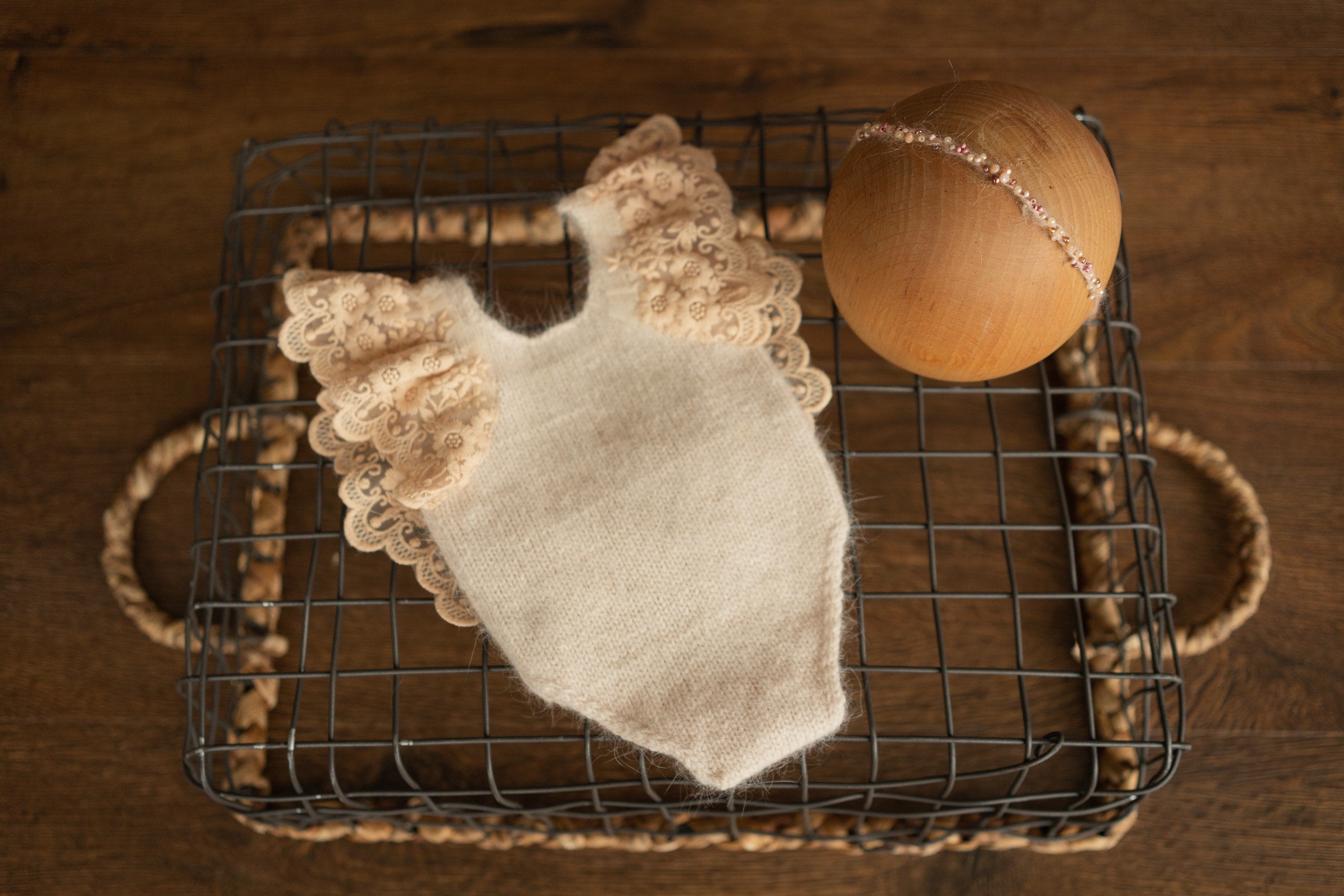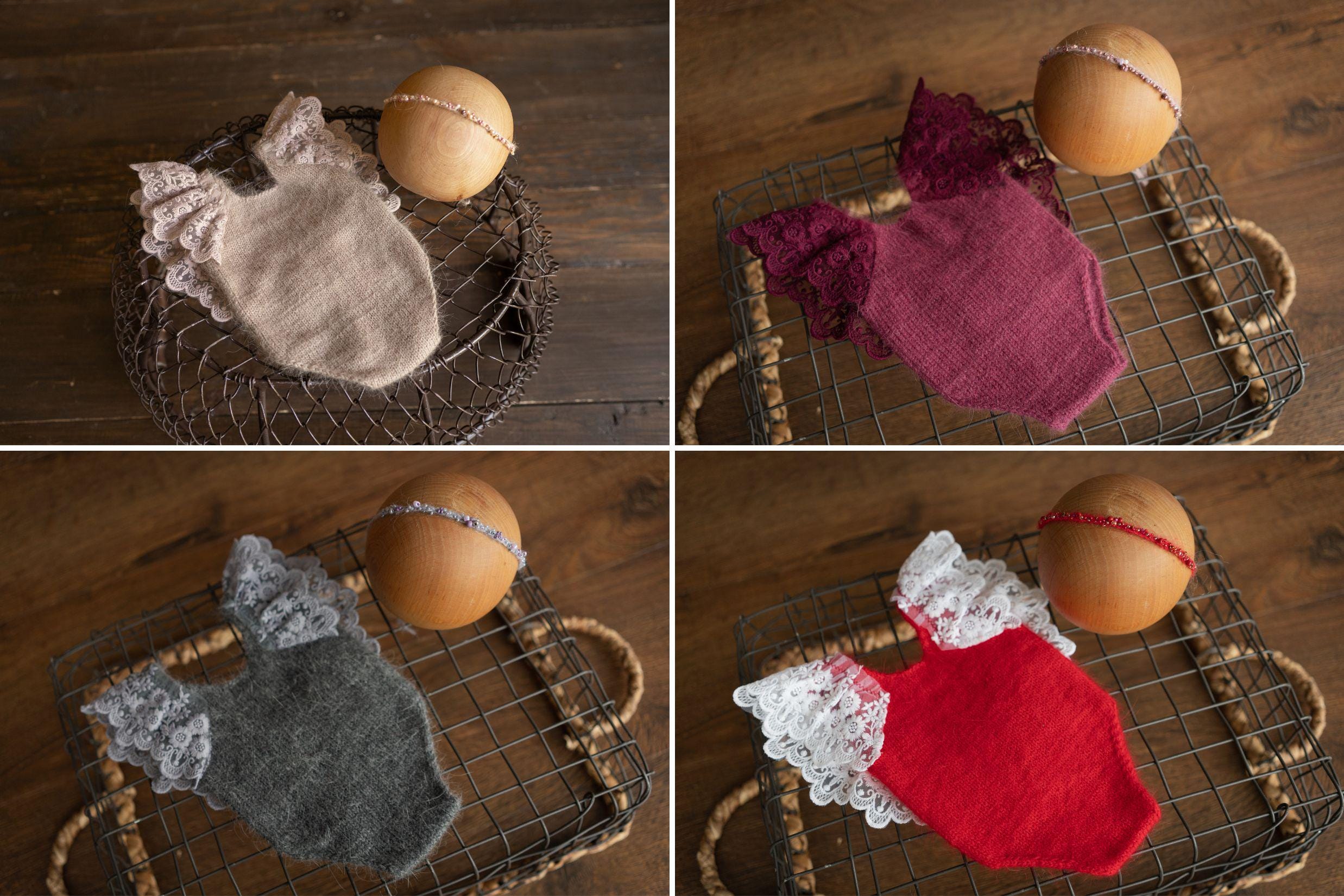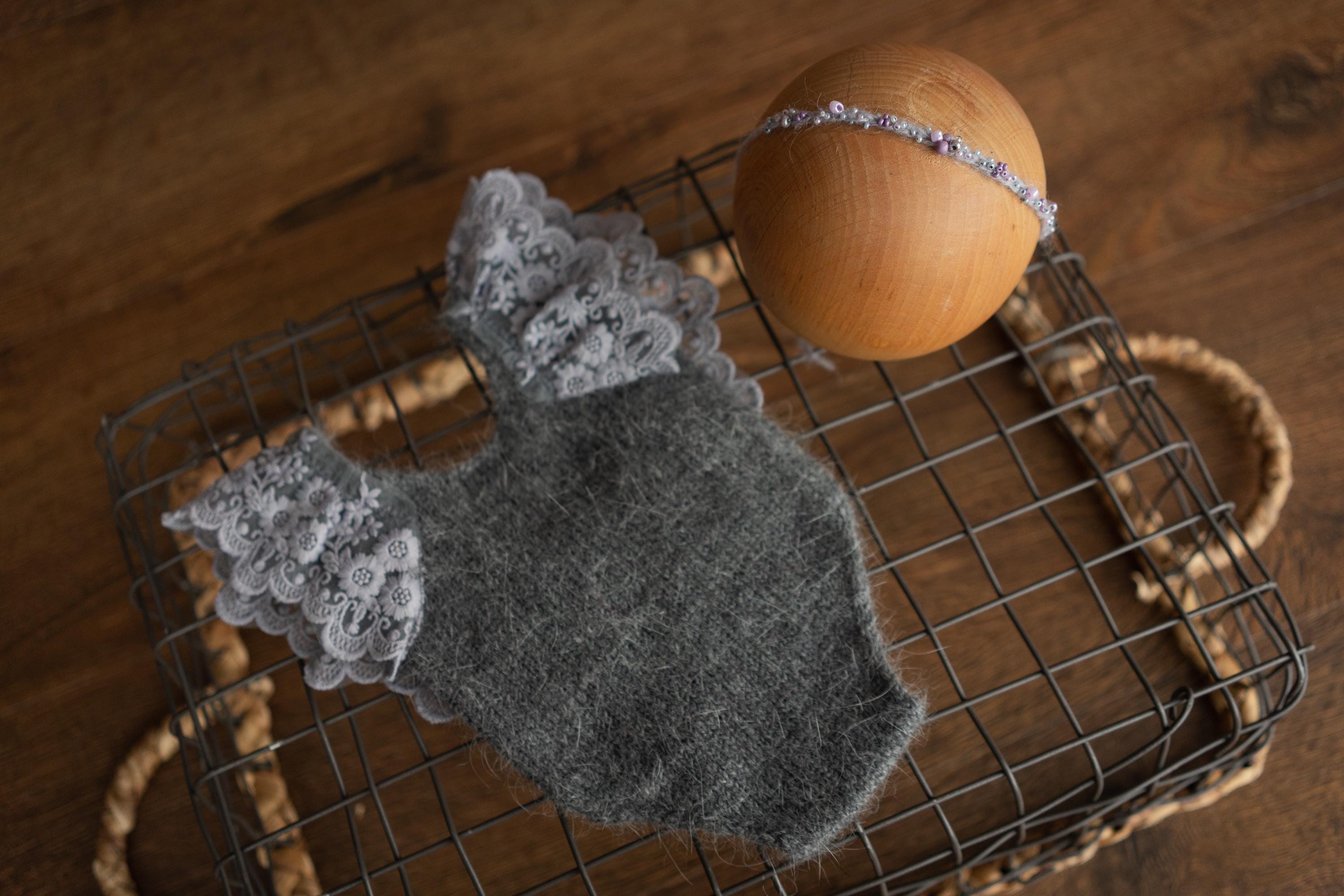 This charming newborn girl photoshoot outfit is perfect for soft, elegant, and memorable newborn portraits. Handmade from the softest angora wool, this delicate newborn girl knit outfit features beautiful lace details for a timeless look. The knitted newborn girl romper or newborn lace sleeve romper creates a sweet, dress-like appearance, while a matching headband adds a polished touch. Ideal as girl newborn shoot outfits or a dressy knit romper for newborn, making it a cherished keepsake for newborn photos.