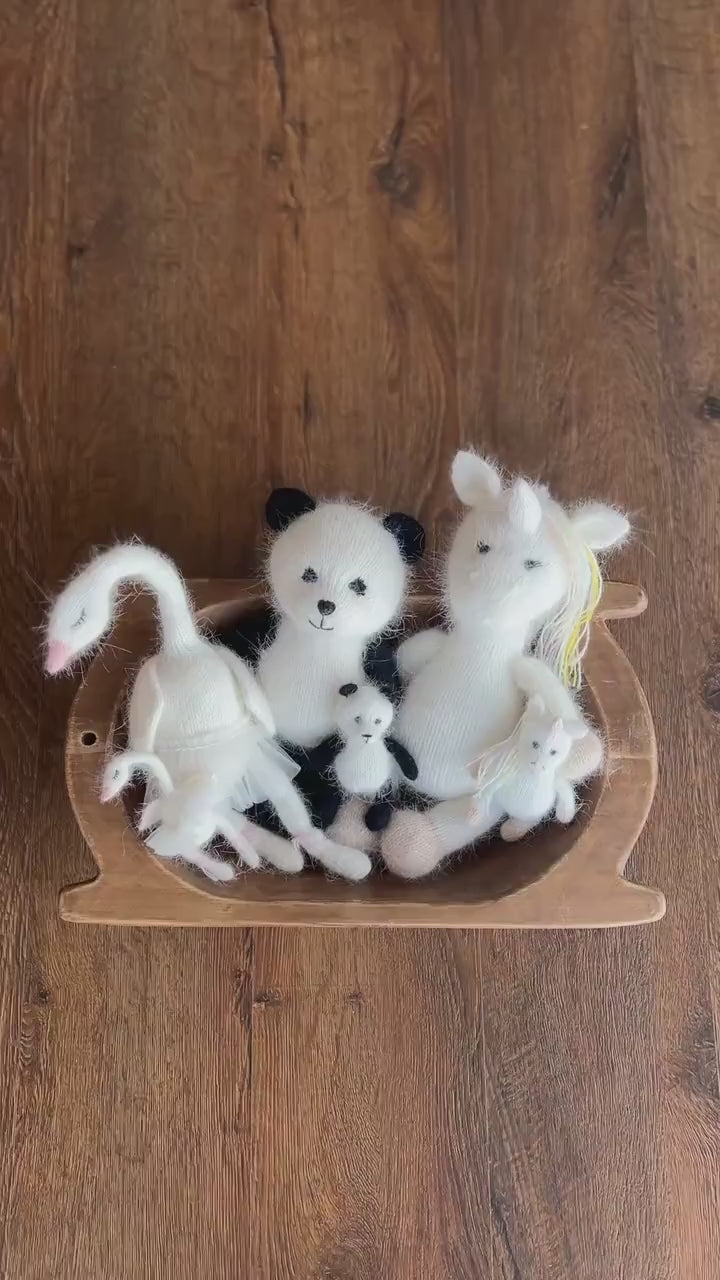 Angora Wool Animal Toy Set – Panda, Swan, Unicorn & Horse | Knitted Newborn Photography Props