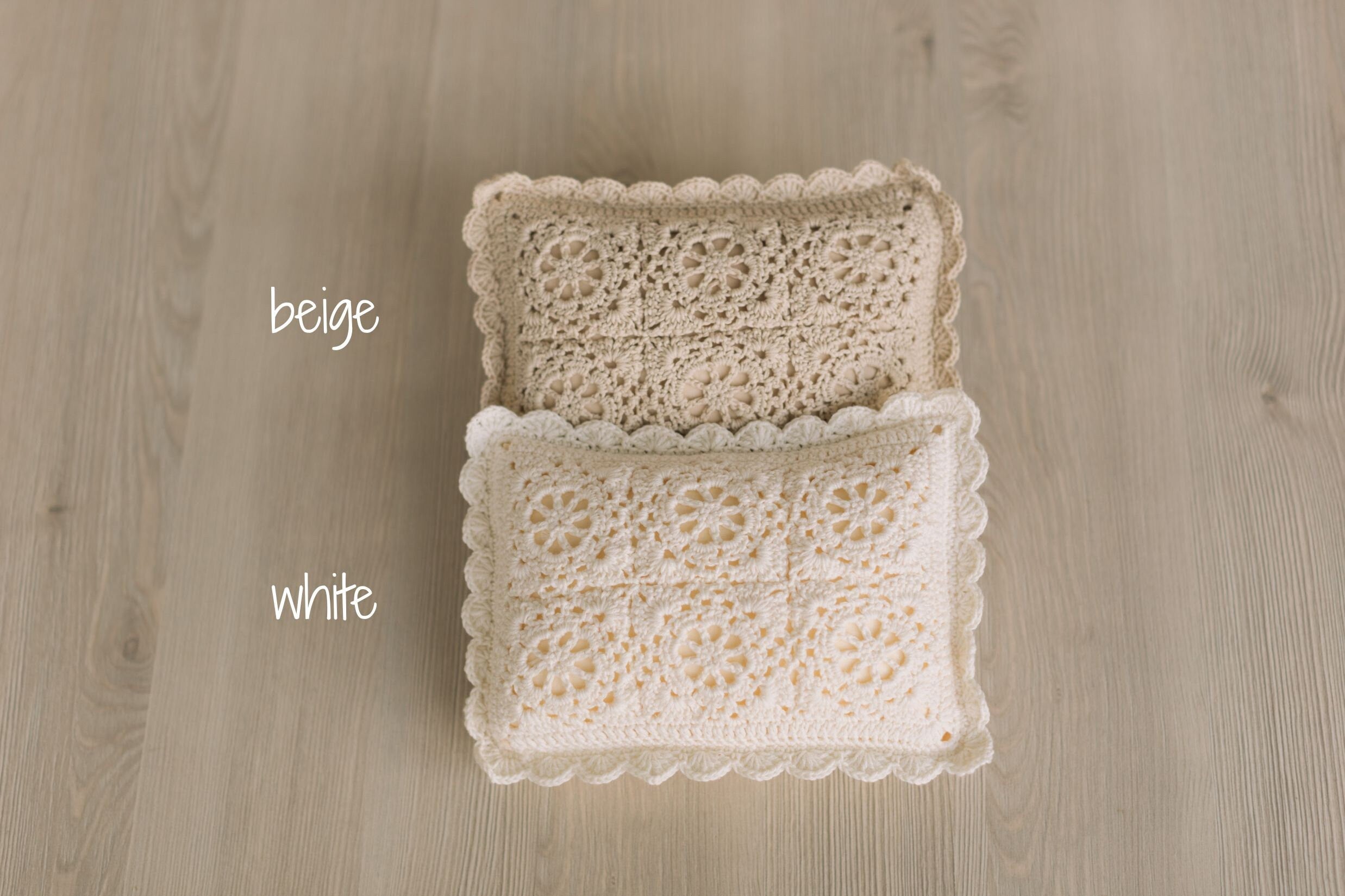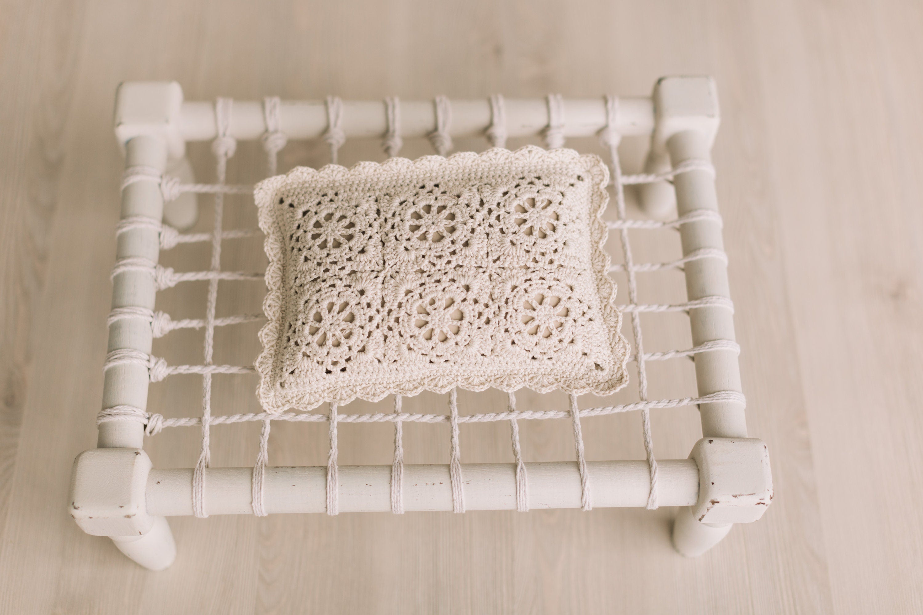 Beautifully crafted in a charming boho style, this newborn props set features a delicate newborn girl crochet photography outfit complete with a matching newborn crochet bonnet and soft photo pillow. Hand-knitted from breathable cotton yarn, the pieces offer gentle texture, natural stretch, and a sweet vintage look ideal for timeless newborn photography.