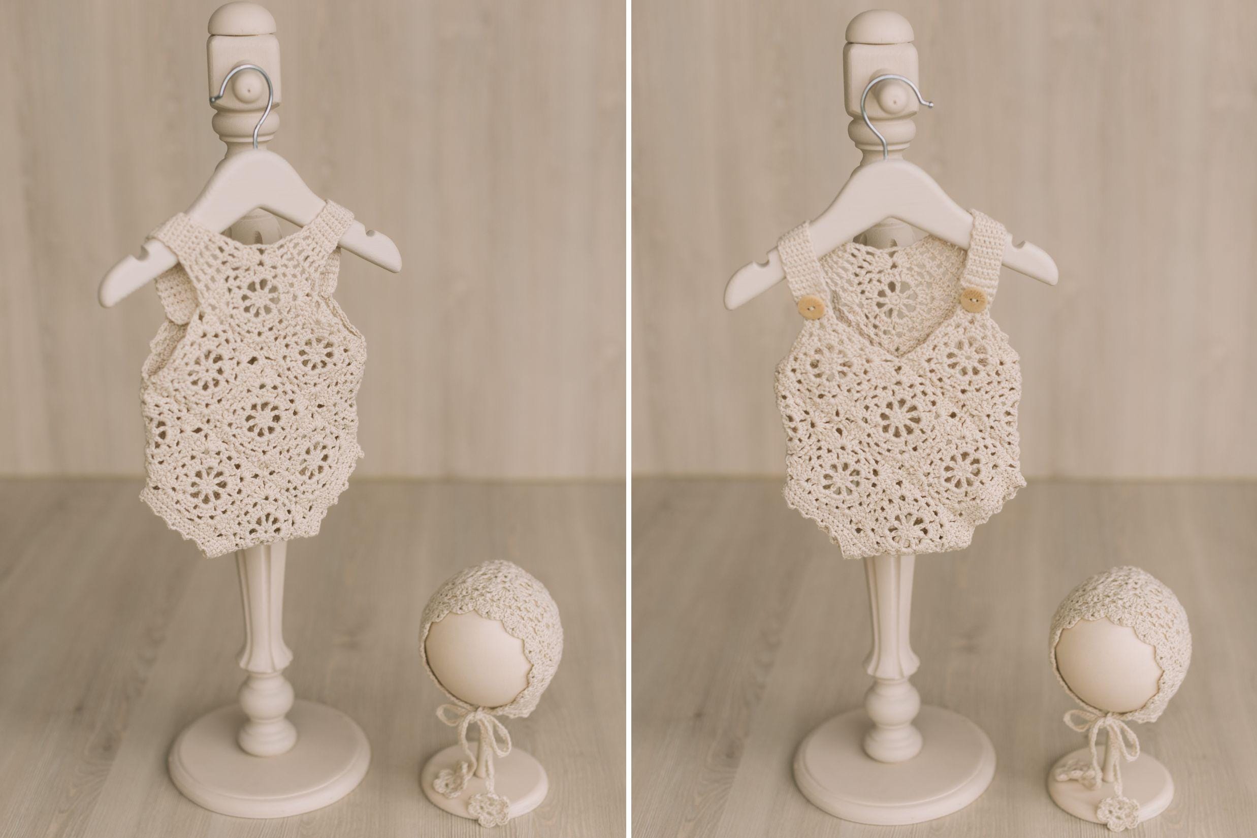 Soft Cotton Vintage Crochet Newborn Romper, Bonnet & Pillow Set